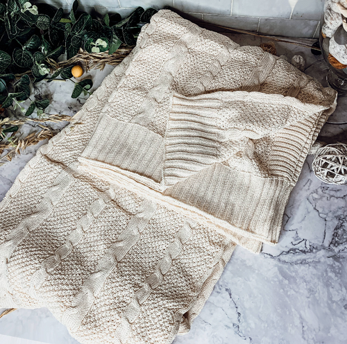 Knit Sweater Blanket- Ivory/White