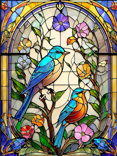 Stained Glass Flowers & Bluebirds 500 pc Puzzle