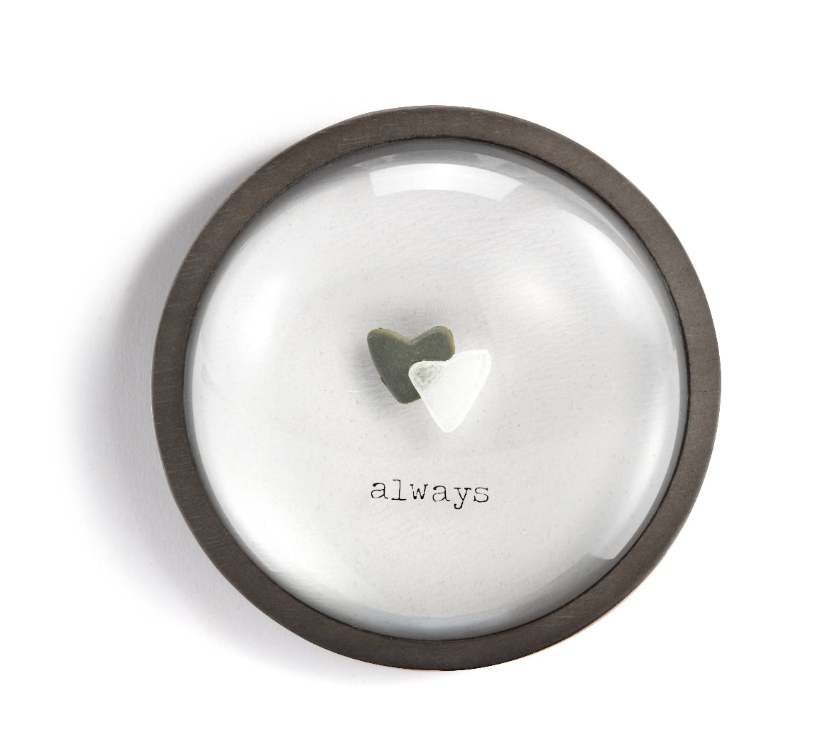 With a sweet sentiment that reads, "Always," the two hearts paperweight is a darling little decoration that can be placed on a pile of papers, a shelf, or anywhere to add a pop of color.