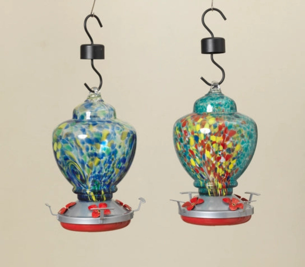 Add a touch of beauty to your backyard with this elegant glass bird feeder. The vibrant blue color and intricate design will enhance any outdoor space, while the feeder's durable glass construction ensures long-lasting use.
