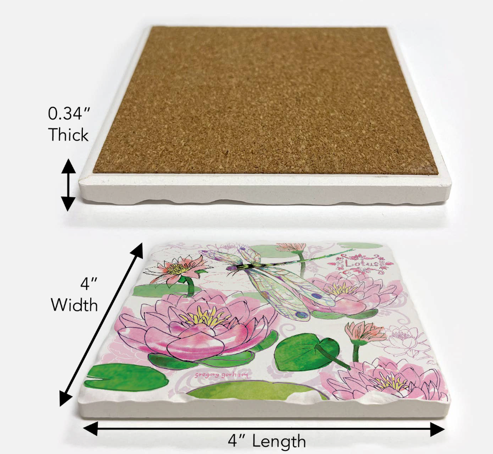 Our absorbent stone coaster absorb excess condensation from beverages. Cork backing protects your surfaces from scratches and stains. Features Tumbled Tile edge giving it that classic yet rustic appearance. Coaster measures 4 inch by 4 inch allowing for a larger glass or cup to be placed on them. This Single Coaster is perfect to be given to friends and family. Give as a hostess gift or keep for yourself.