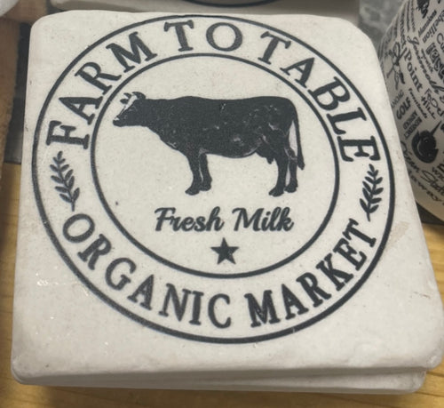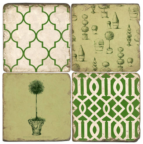 Topiary & Trellis Tumbled Marble Coasters Set/4