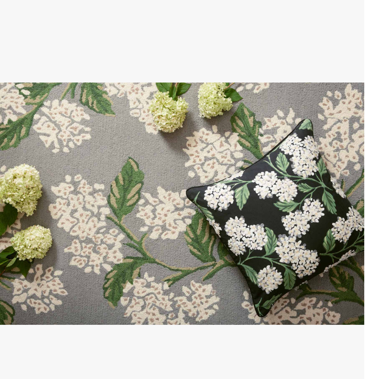 Featuring floral designs that are uniquely Rifle Paper Co., the Joie Collection for Rifle Paper Co. x Loloi is hooked of wool by master artisans in India.