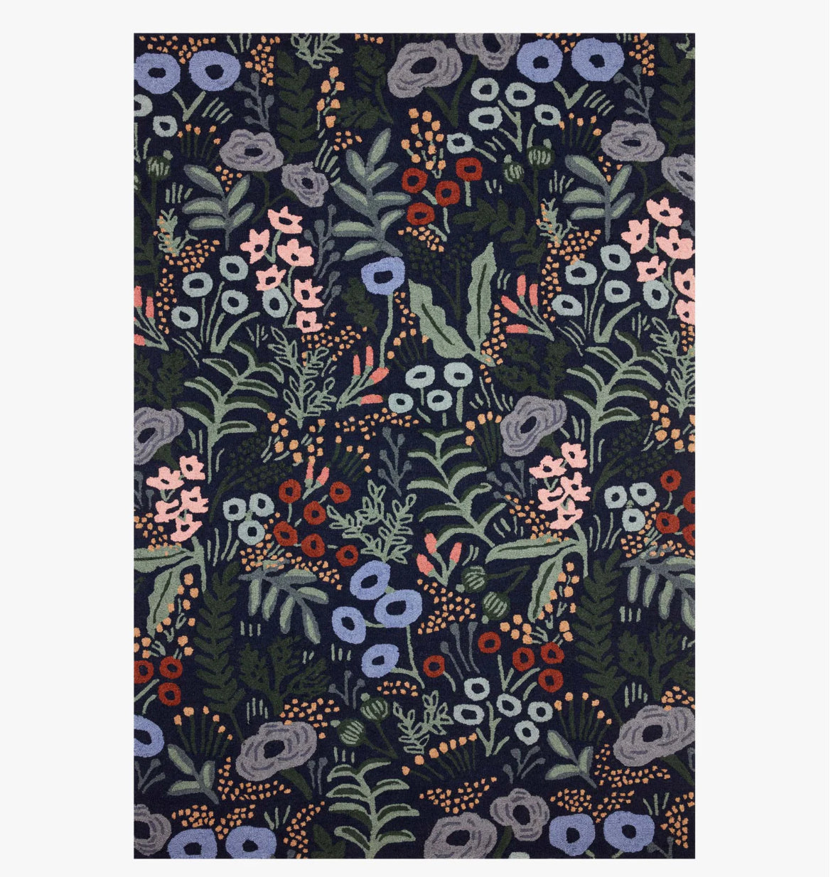 Featuring floral designs that are uniquely Rifle Paper Co., the Joie Collection for Rifle Paper Co. x Loloi is hooked of wool by master artisans in India.