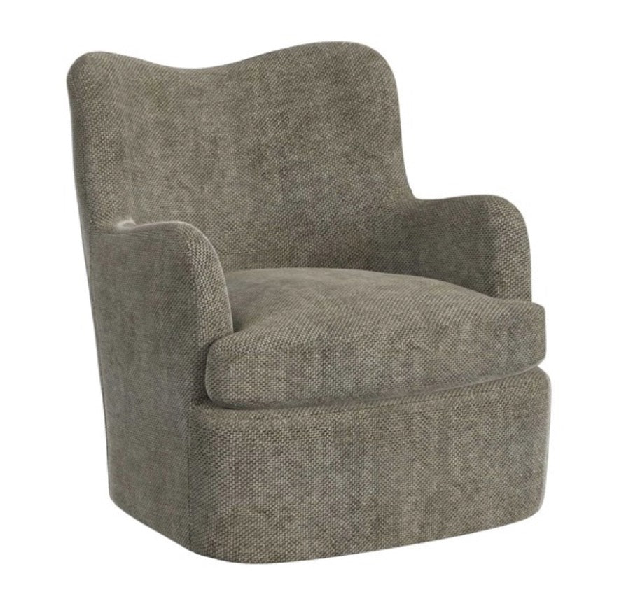 The Chit Swivel Chair is big on comfort and the perfect size for groupings. The hardwood frame, back and sides are wrapped with 100% cotton. The cushion is made of UltraCel high density foam wrapped in Trillium, giving it all the properties and comfort of down without the required maintenance. Upholstered in a cuddly sage chenille with a basket weave texture.