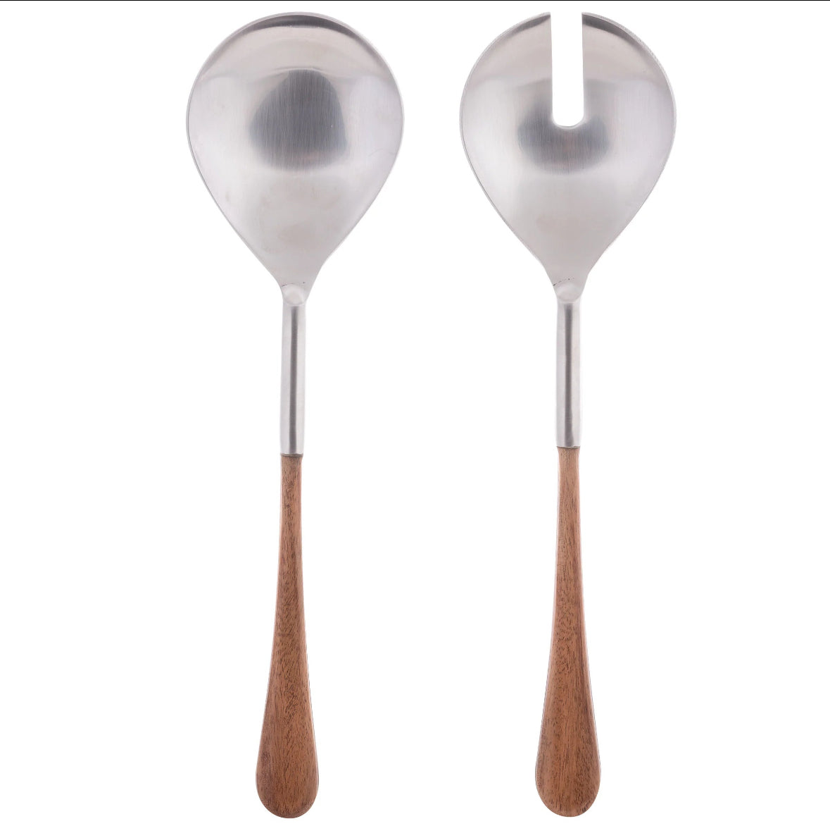 The Sierra Salad Servers are a simple and elegantly-designed set of spoon and forked servers. Each piece features a mango wood handle. This sturdy set can easily serve leafy salads, chilled pastas and chopped fruit or vegetables.