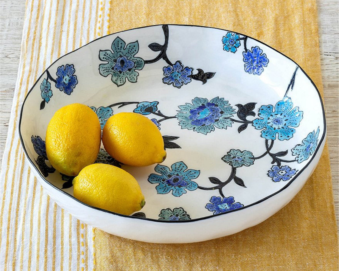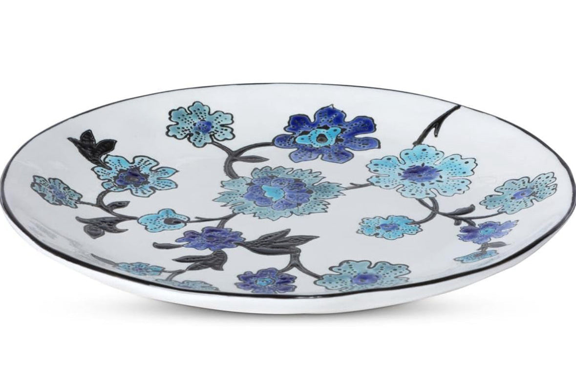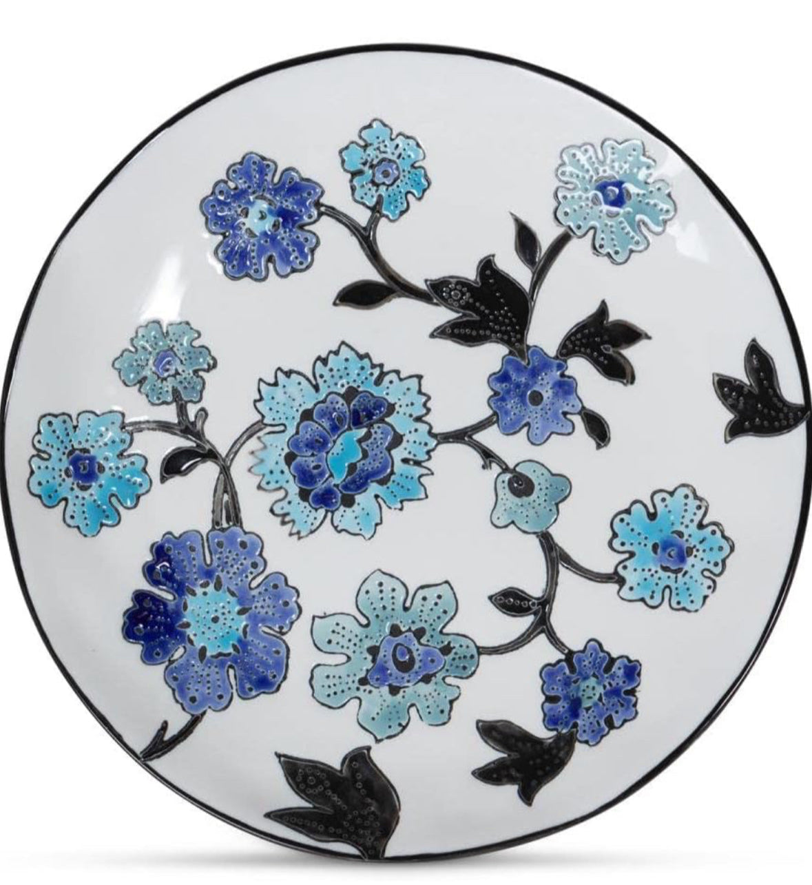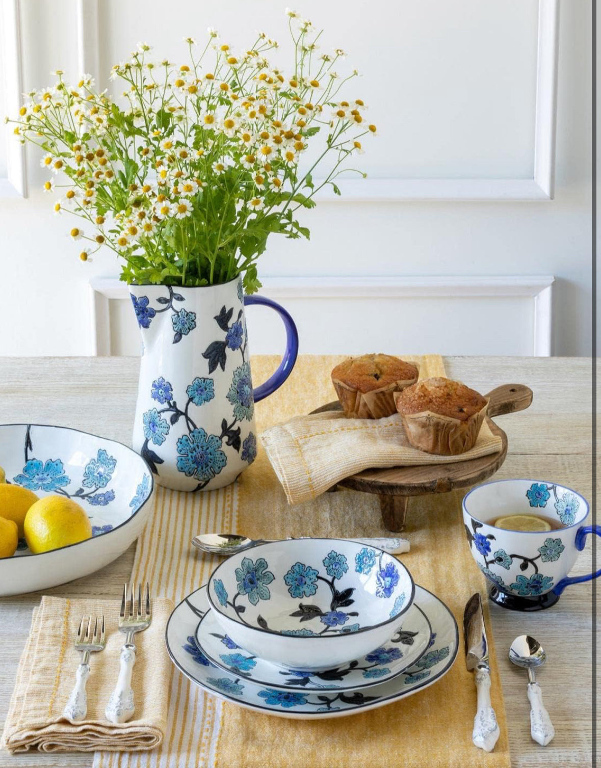 Vining blossoms are delicately scattered about on these hand-finished, glazed stoneware plates. Every shade of blue adds charm and whimsy to this collection to be mixed and matched with other patterns or perfectly lovely alone. Hand-painted details.