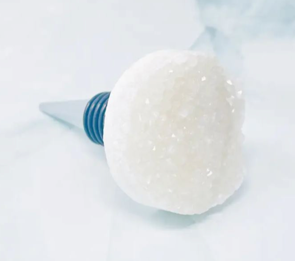 Wine stopper with beautiful natural stone centerpieces. These natural-cut semi-precious rocks make the wine stoppers look luxurious with precious characteristics! A great accessory and make great gifts for birthdays and holidays!
