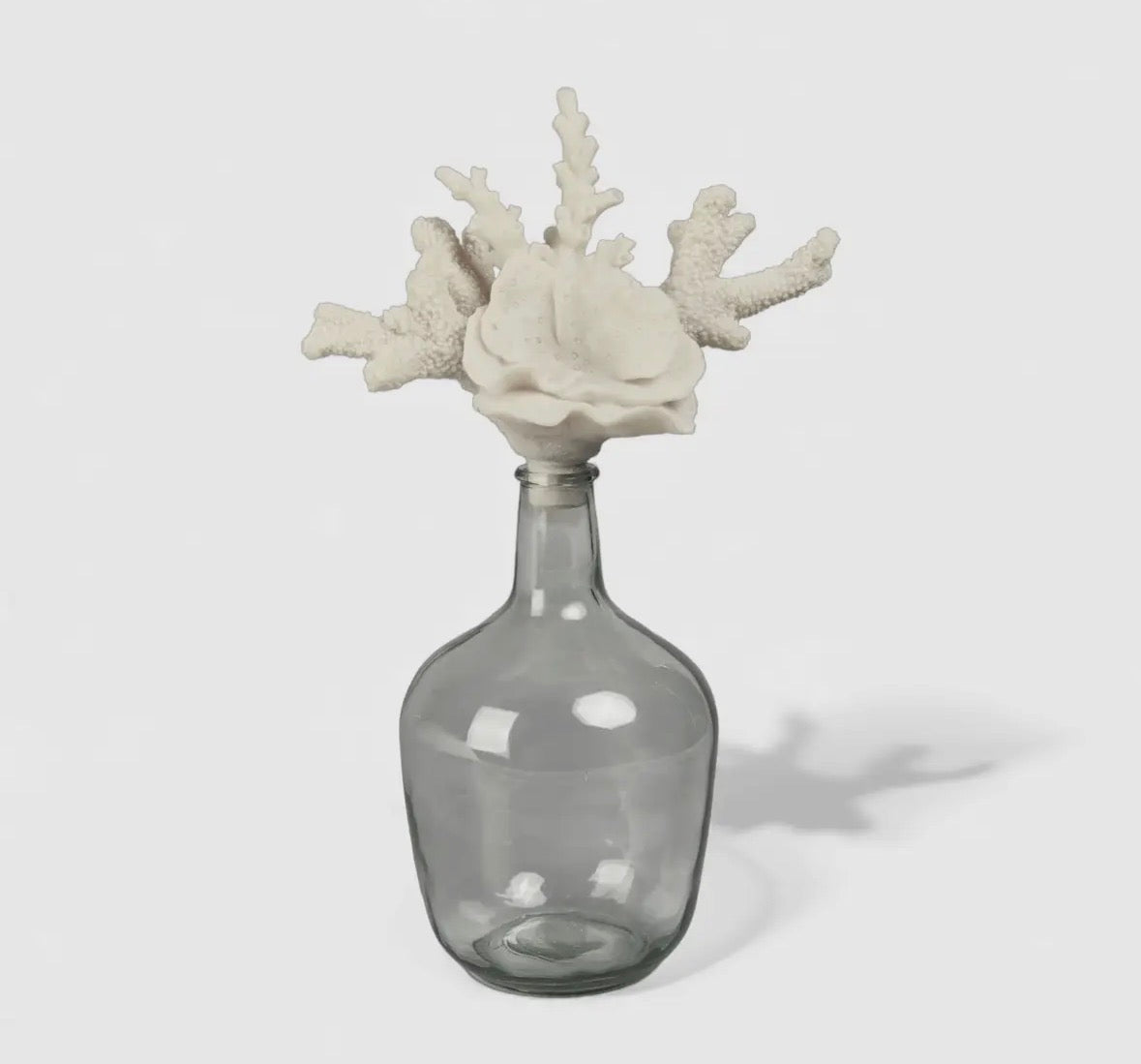 Our Smoky Bottle with Coral Stopper Collection are exquisite pieces that add a unique touch to any decor. The smoky bottle, accented with a white coral stopper, is a unique decor item that speaks to your style. It's the perfect blend of aesthetics and functionality, making it a must-have for those who appreciate coastal home decor.