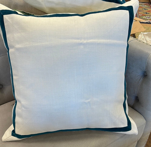 • Peacock Velvet Border on Linen Euro Pillow