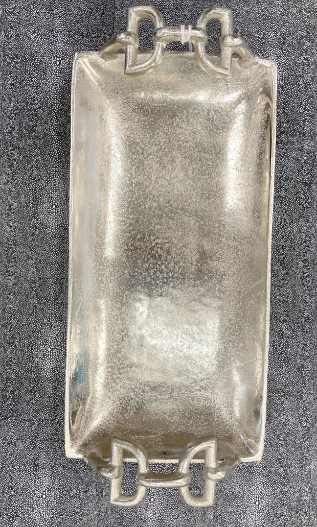 The Birkdale trays are cast aluminum with a dimpled texture and distinctive handles that feature a Snaffle Bit design.