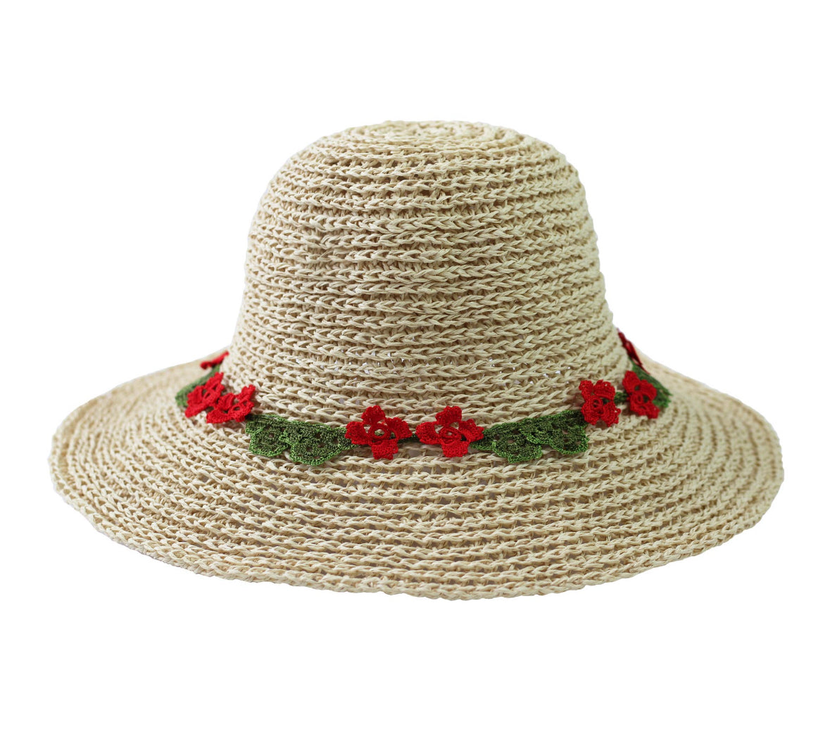 Our Evie’ bohemian sunhat is inspired by the laid-back scene of California. This sunhat is handwoven by female artisans in Turkey from raw paper and has floral oya embroideries. Evie sunhat is ultra flexible, so you can adjust the wide brim to shade your face perfectly. It is a trendy choice for garden parties and poolside drinks.