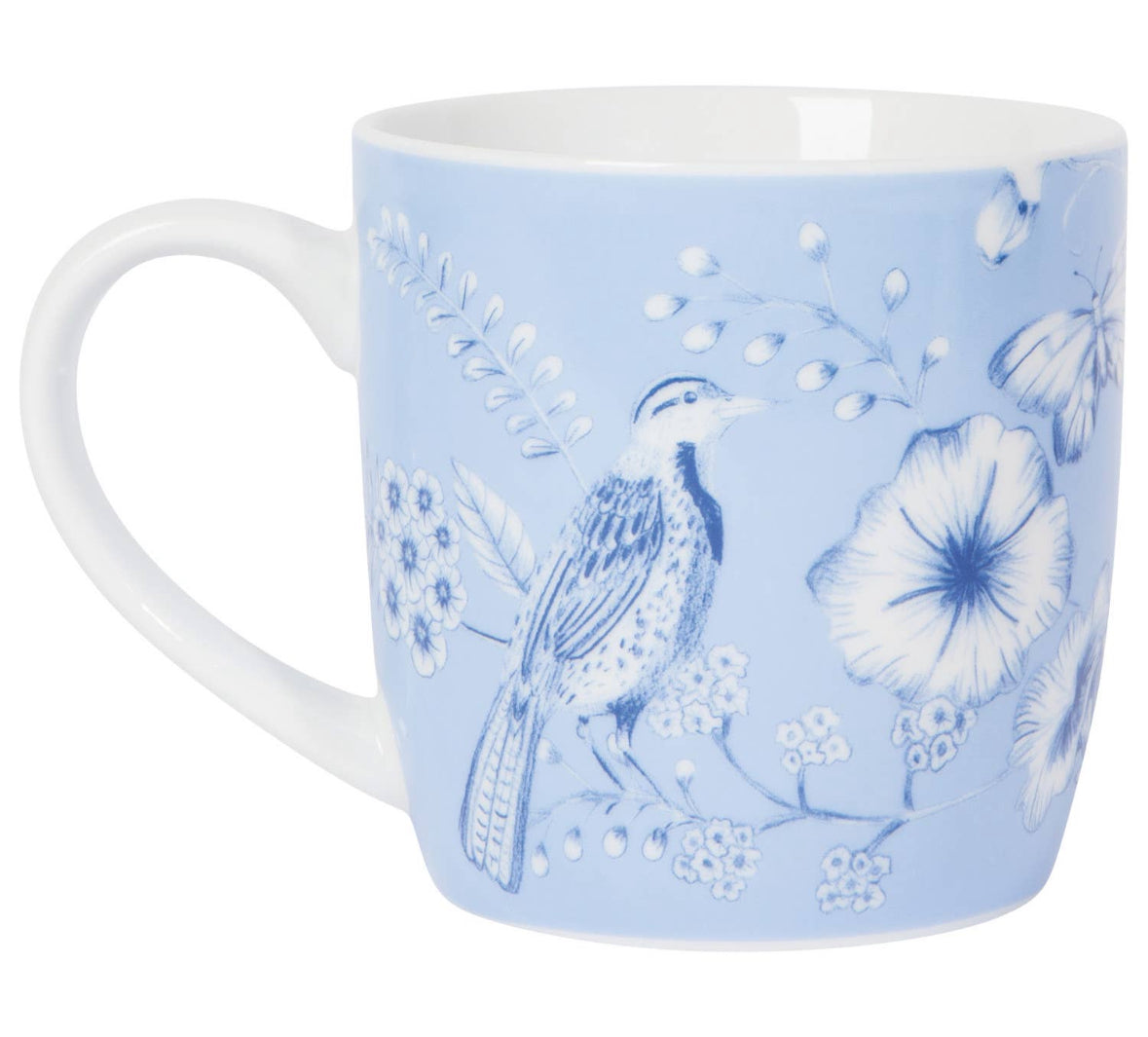 Escape to the countryside when you drink from this Juliette mug designed with its calming blue and white floral bird print. Embellished with a delightful motif inspired by everyday life.
