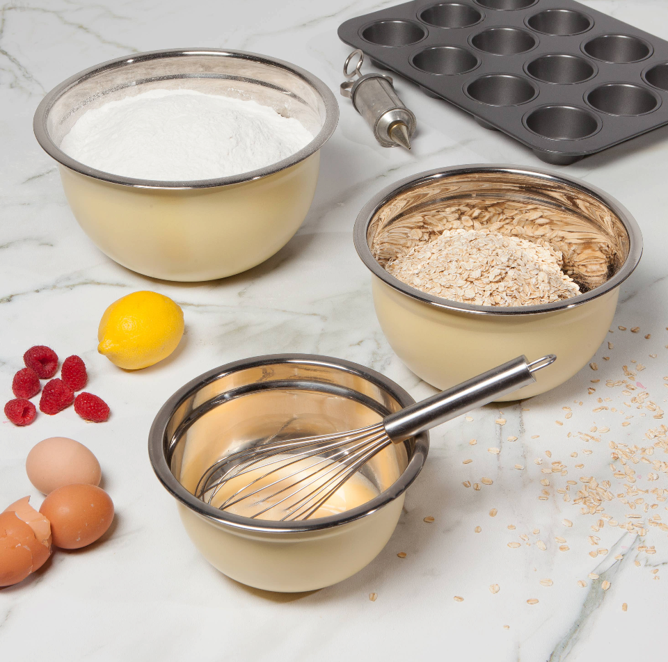 Colored nesting mixing bowls are perfect for any kitchen task. From prepping, mixing, or serving, this set of 3 stainless steel bowls is a great addition to your kitchen essentials.