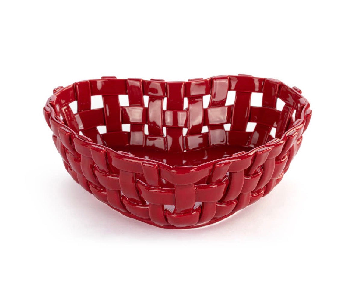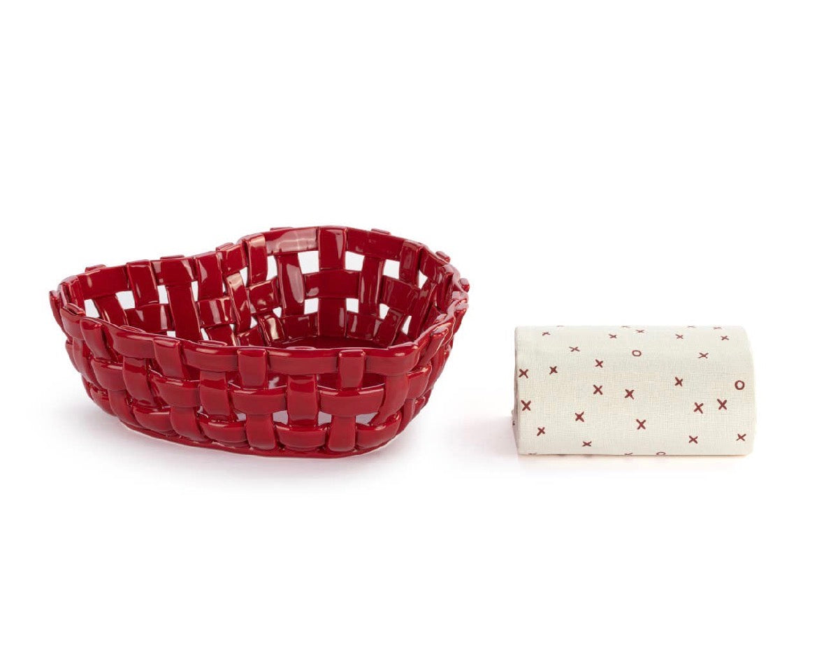 Looking to serve food in style yet keep it functional? Look no further than the Red Ceramic Heart Bread Basket with Towel from our Gather 'Round Holiday collection. This bowl is sure to become your hosting helper must-have.